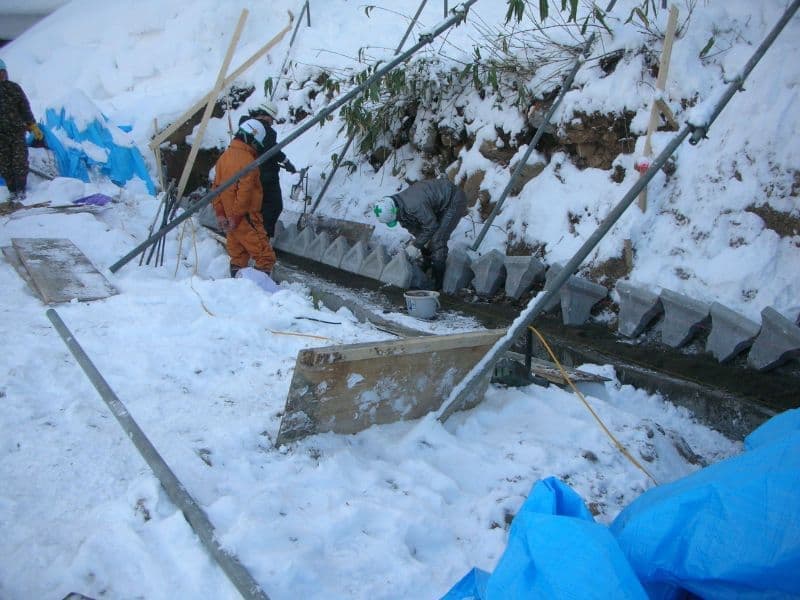 | 道路公団 | 北海道朝里 | 北海道横断自動車道新光工事 | 間知ブロック |