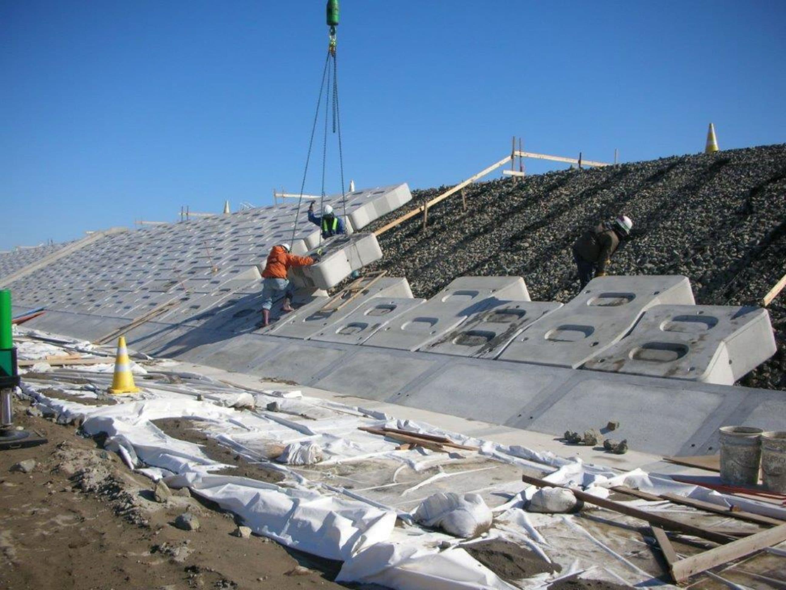 道路縁石 河川ブロック、石積み、自然石敷設など石の施工全般を行っております。